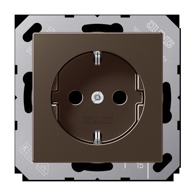 Розетка Jung FD FRAMES, скрытый монтаж, с заземлением, со шторками, мокка, A1521KIMO